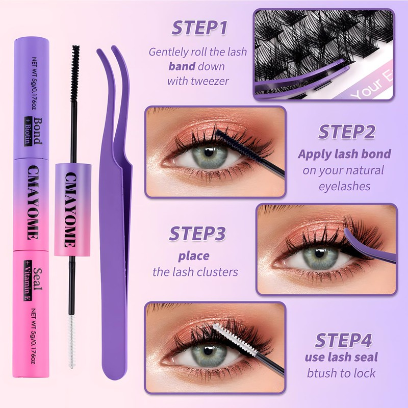 - Anwendungsschritte: Tragen Sie den Wimpernkleber auf, nehmen Sie die Wimpern-Cluster, tragen Sie die einzelnen Wimpern auf die natürlichen Wimpern auf und lassen Sie einen Abstand von 2-3 mm zum Augenlid. Mit mehr Übung können Sie in 5 Minuten einen Look kreieren