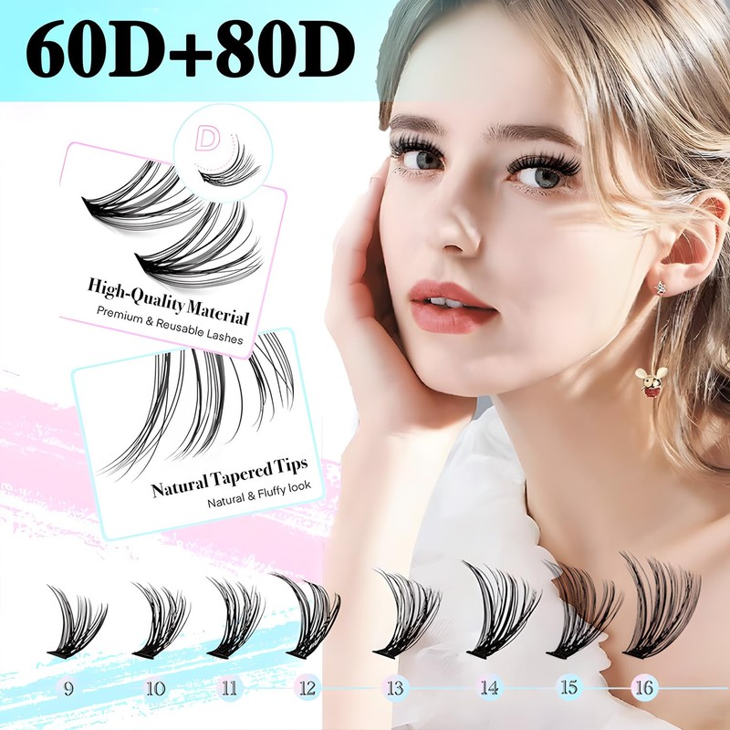 - Aktualisierte Cluster-Lashes-Fasern: Unsere Wimperncluster werden aus den besten aktualisierten PBT-Materialien hergestellt, um Weichheit, Dicke, Haltbarkeit und Langlebigkeit zu gewährleisten. Die Wimpernbüschel sind so konzipiert, dass Sie vollere Wimpern erhalten, die natürlicher aussehen als herkömmliche falsche Wimpern.