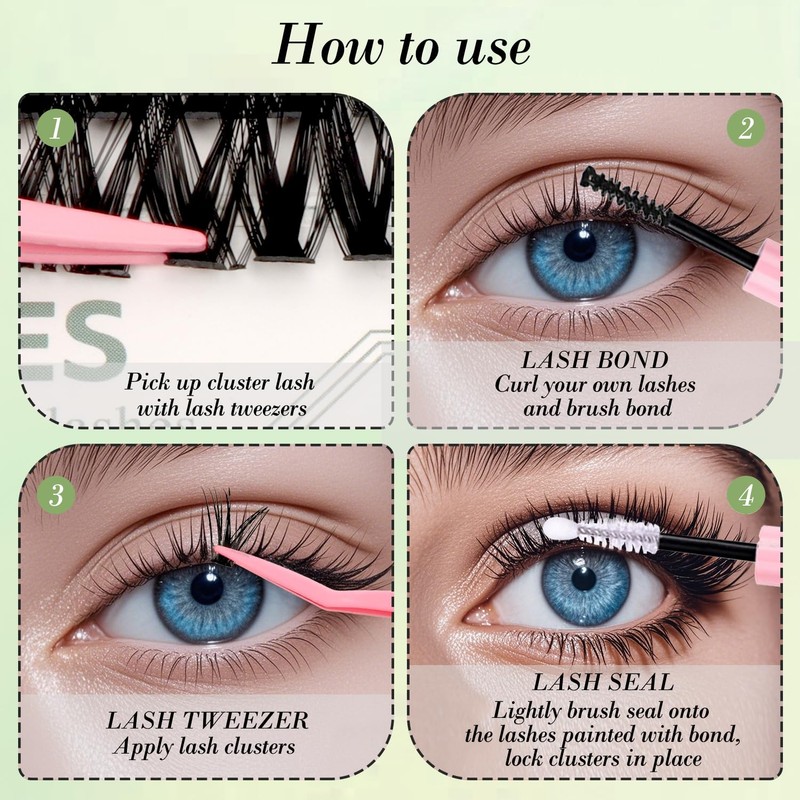 - 【Langanhaltend & Wiederverwendbar】Bei richtiger Pflege halten die Cluster-Wimpern bis zu 3 Wochen. Der spezielle pinke Entferner löst die Wimpern schonend ohne Rückstände