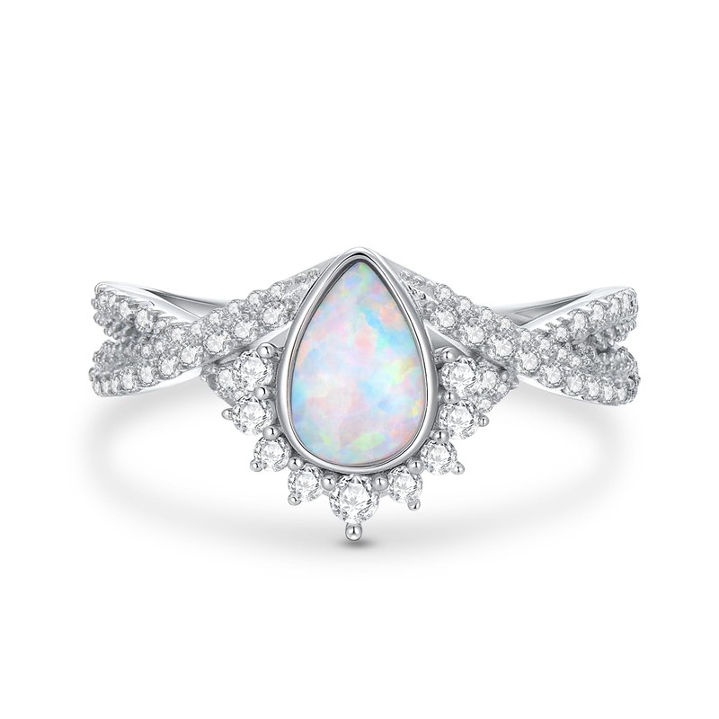 • 【ABOUT SILVER OPAL RING】Metal Type: 925 Sterling Silver; Stone Shape: Pear Cut; Center Stone Type: White Opal; Side Stone Type: 5A Cubic Zirconia; Center Stone Weight: 1.0 Carat; Ring Size(US): 4-12.