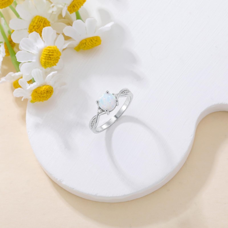 MOTIEL Opals Ring for Women 1 Carat 925 Sterling Silver Round Shape Opal Engagement Ring with Moissanite Promise Ring Valentine's Day Jewelry Gifts for Her-5