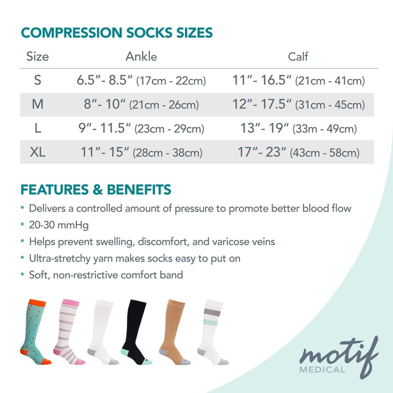 - KEEPS YOUR TOES SNUG AND DRY - You have enough to worry about after being a new mom. Show your feet some love with these super-cute, snug socks. They are made of soft, moisture-wicking materials that keep your toes cozy, dry, and odor-free. PREGNANCY AND POSTPARTUM COMPRESSION RELIEF - These super-comfy socks help reduce discomfort in your feet and ankles, support your cardiovascular system by promoting good blood flow, and help you stay more comfortable when you're on your feet