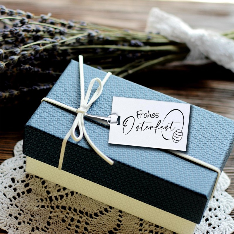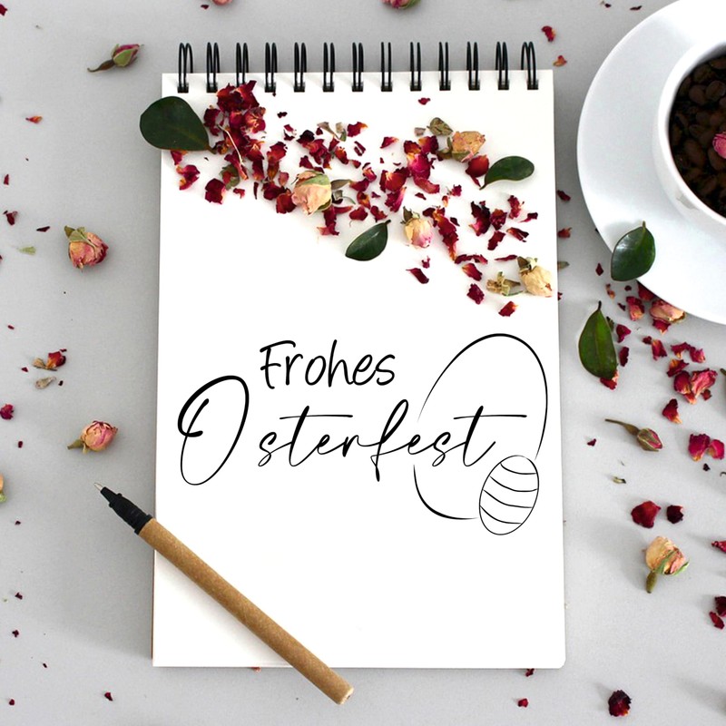 - You will receive a lovingly designed stamp with the pictured motif: Frohes Osterfest - Easter eggs.