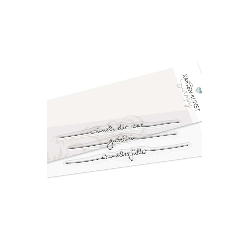 • Three long stamp lettering for gifts, vouchers and good wishes: wish you what, voucher, wish fulfiller. Elegant German handwritten saying stamps for birthdays and other beautiful occasions. Width: each approx. 12-13.5 cm, height: 0.7-1.4 cm.