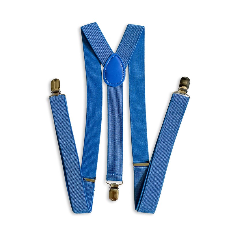 MOTIF SUSPENDERS para hombres y mujeres en forma de Y 3 clips de metal, correas elásticas., Azul / Patchwork, Large