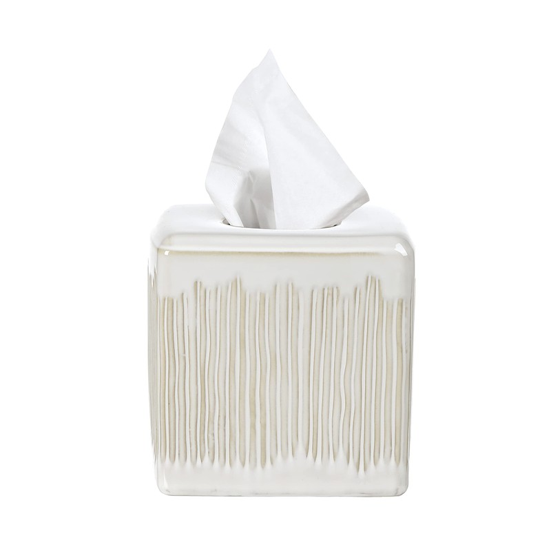 Motifeur Bathroom Accessories - Ceramic Tissue Holder, Decorative Square Tissue Cover Box (Ivory White)