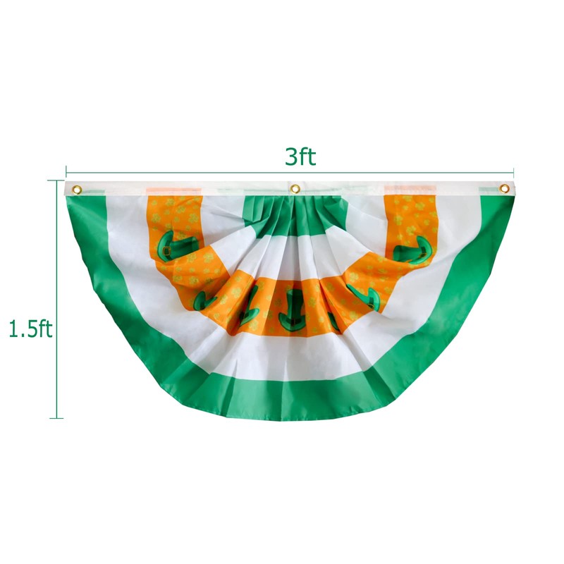 • ☘️【Quality Material】The St. Patrick Day fan flag is made of durable 100D polyester with 3 brass grommets with precision lock stitching to ensure that it will look perfect.1 flag per pack.
