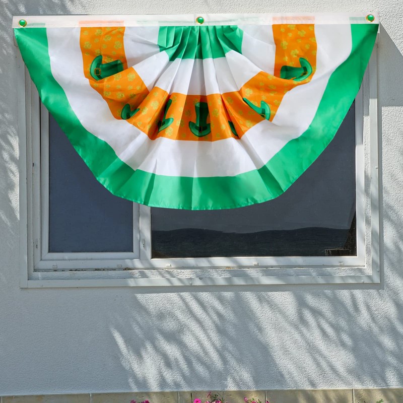 - ☘️【Quality Material】The St. Patrick Day fan flag is made of durable 100D polyester with 3 brass grommets with precision lock stitching to ensure that it will look perfect.1 flag per pack.