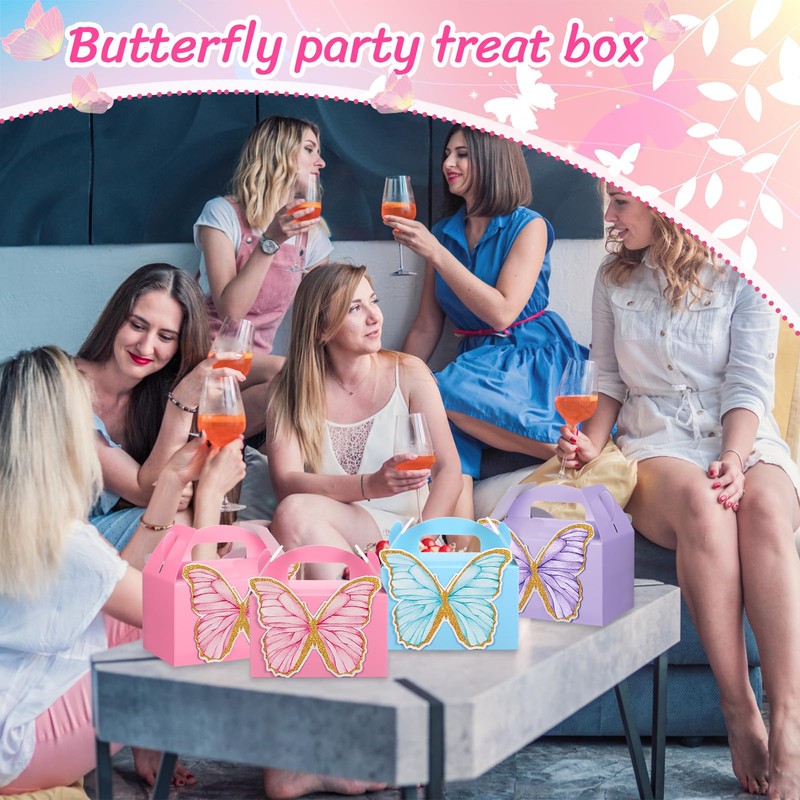 - Wide Application: these butterfly party treat boxes can be widely applied in various parties, such as butterfly theme party, girls birthday party, baby shower, etc.; Can also be applied as gift bags, gift bags for storing gifts, candies, chocolates, cookies, small prizes, small toys, etc