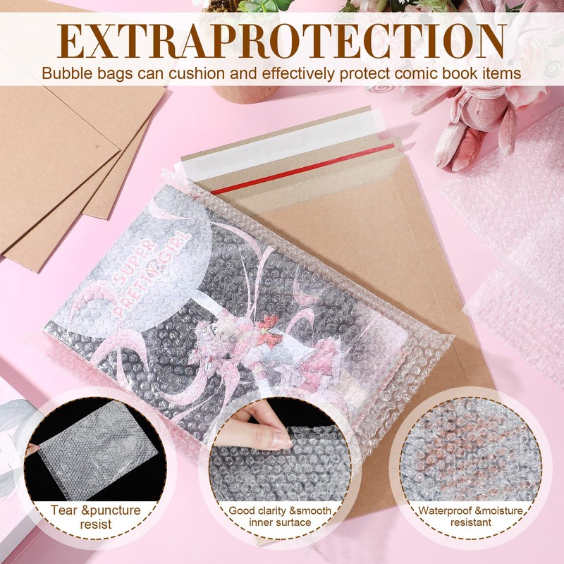 - Unique Design: this product is equipped with anti collision bubble bag; Before use, comic books are placed in the bubble bag and then in the envelope, which can protect comic books from being damaged during transportation, and comic books are mailed with a self adhesive strip at the top to ensure that the contents are not damaged in transit; Simply peel, seal, and press to glue the ends together