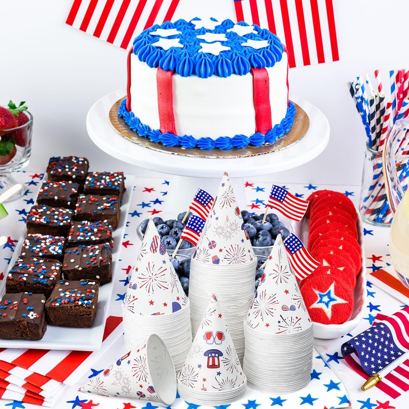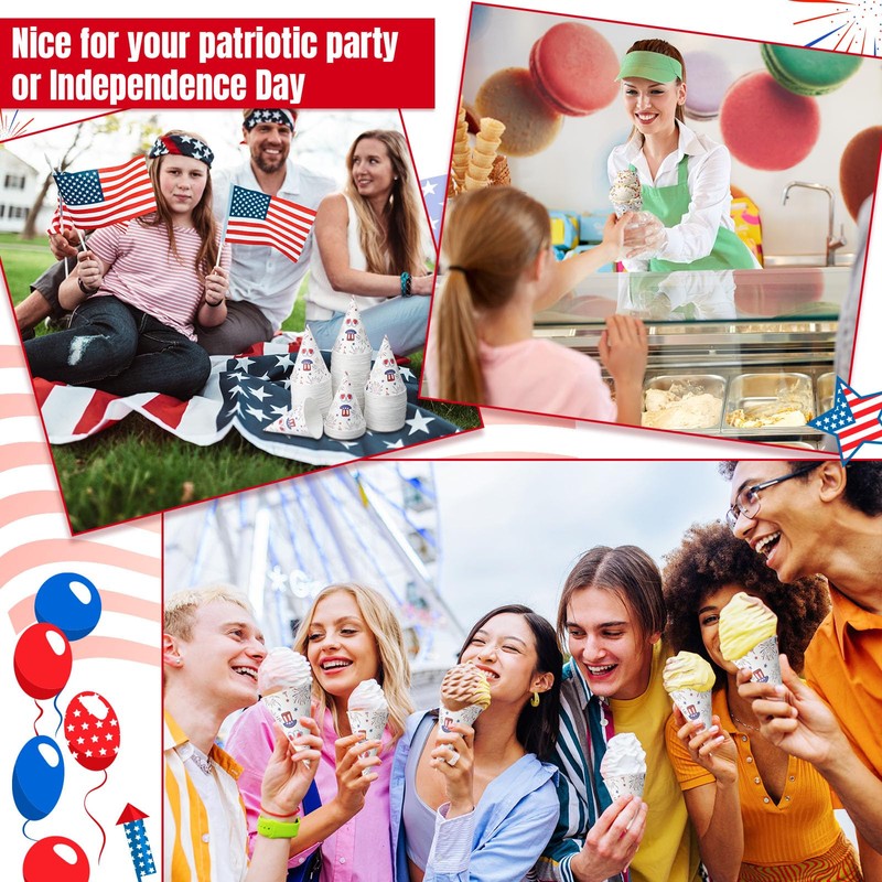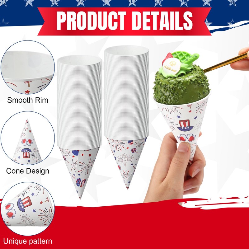 - Quality and Reliable Material: the 4th of July paper cone cups are made of thickened paper, and have a leakproof coating of wax, which can keep the ice or liquid in the cup from leaking; They are safe and odorless, so you can use them with confidence