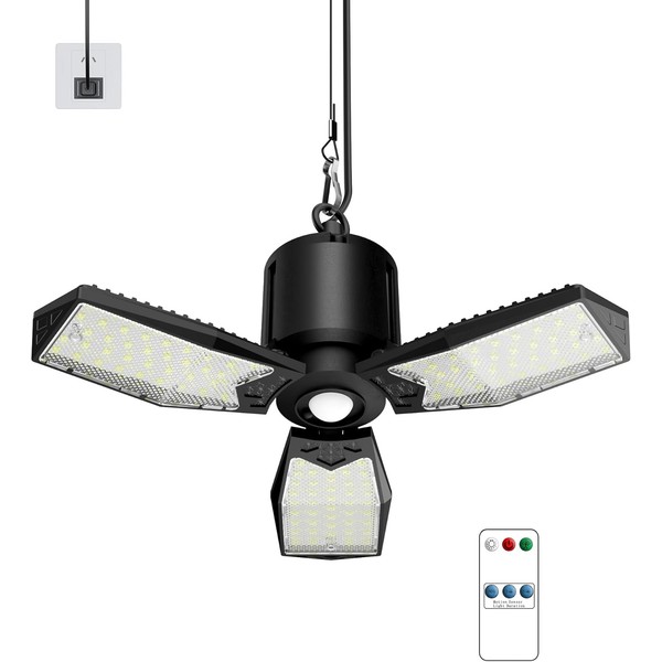 - 【Instant Plug-&-Play Installation】No wiring needed! Plug into any outlet, no wiring or electrician required; 2 professional hanging options, Fixed Mount: hang with included hooks (included) Adjustable Drop: extend the retractable stinless steel cord (adjustable 0-3.28ft height) – perfect for sloped ceilings or over workbenches;