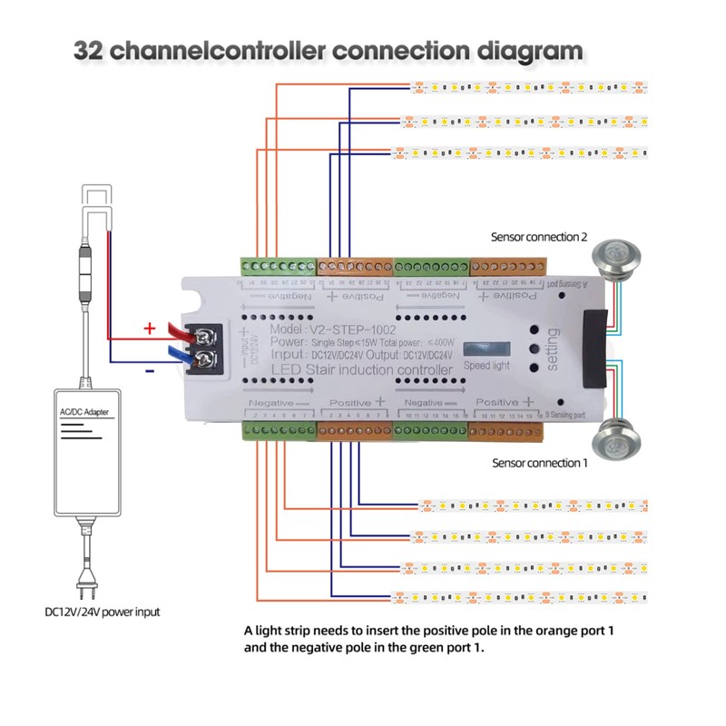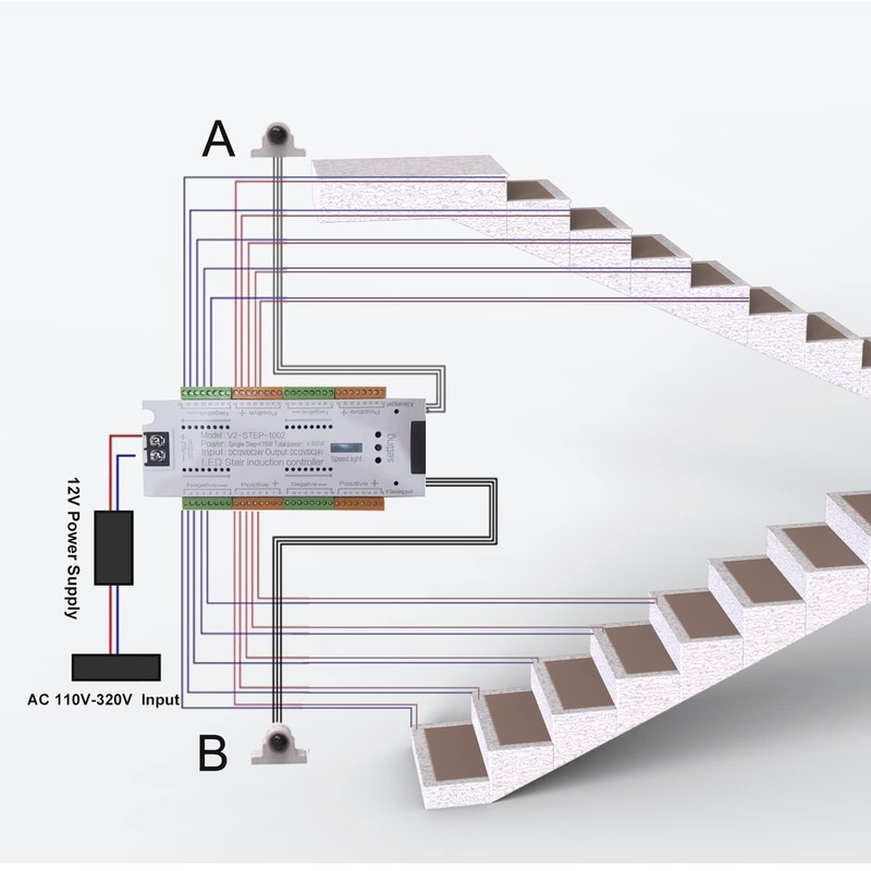 Motion Sensor LED Stair Light Controller Stairway Lighting Controller 32 Chan...