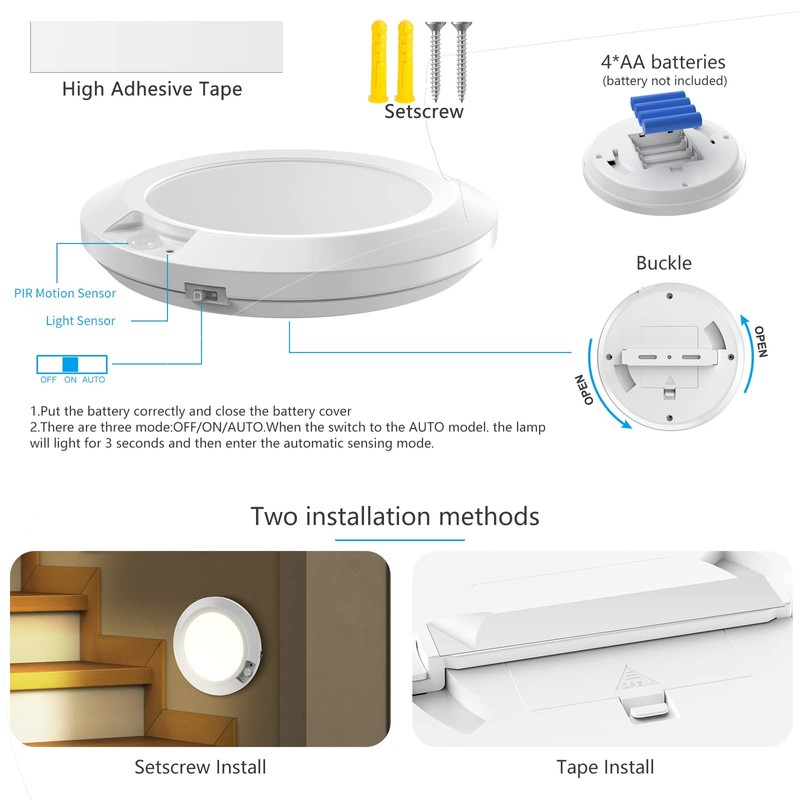 - 【Intelligent Sensor Lights】 Motion sensor light indoor for human body sensor + light sensor dual control, no need to touch, automatically sensing human activity, only when needed to light up, for your night activities to provide convenience, for you and your family's safety at night. tips: automatic mode within 3-5 meters detected motion automatically turn on, 20 seconds after the automatic shutdown, the motion sensor light will only be turned on in the dark when the motion is detected. Of course, you can also use the manual switch to turn the light on or off at any time.