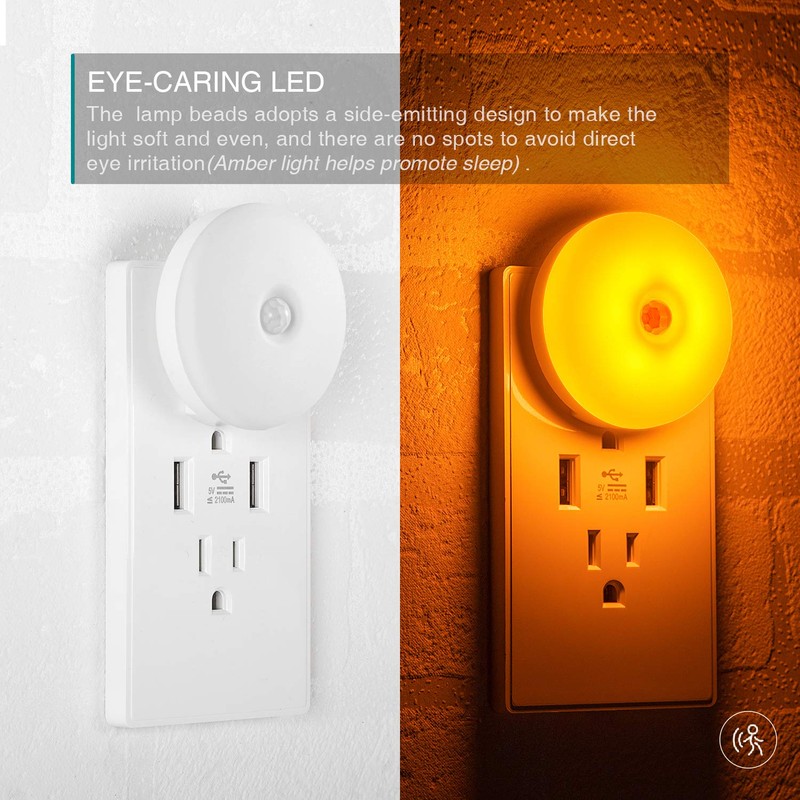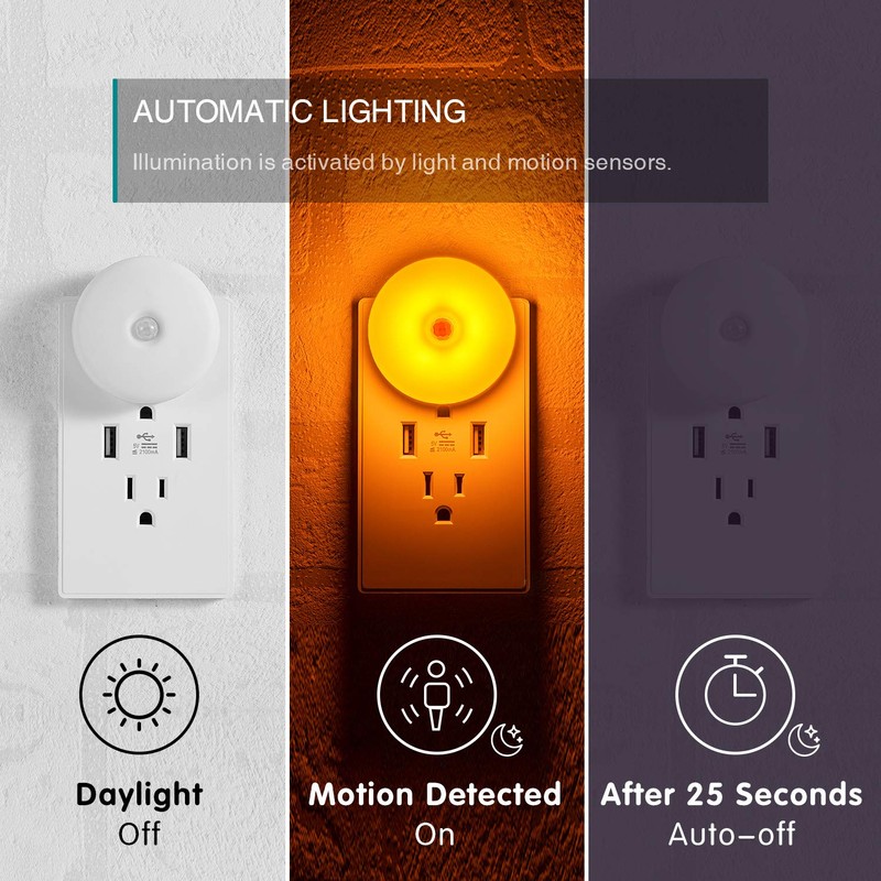 - 🌃 The smart night light plug into wall and work by detecting movement and ambient brightness. Motion sensor will activate the nightlight when movement detected in the dark.