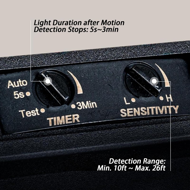 - 【Adjustable Motion Sensor】The sensor's sensitivity and timer panel are easy to adjust, providing a 5-180s timer and a maximum 26-foot reach, accommodating various temperature, height, and usage requirements without the need to disassemble the fixture.