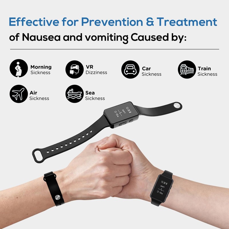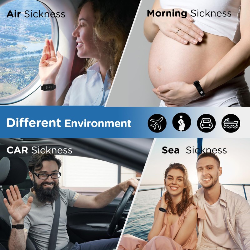 - ✌✌ Effective Nausea Relief ✌✌ Electrode stimulator built into motion sickness bands , great for relieving nausea and vomiting due to morning sickness, pregnancy sickness, car sickness,train sickness,air sickness, sea sickness . The anti-nausea wristband also useful for relieving anxiety, migraine ,insomnia .