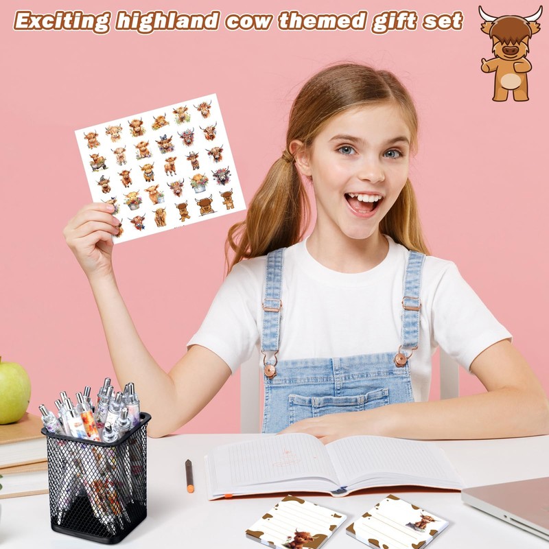 - Ideal Highland Cow Themed Gifts: these cute highland cow black ink pens with sticky notes and stickers make for a nice gift idea; They are ideal as holiday presents, birthday gifts, or as party favors in a highland cow themed event; The recipients, regardless of their age or gender, will surely appreciate these useful and delightful item