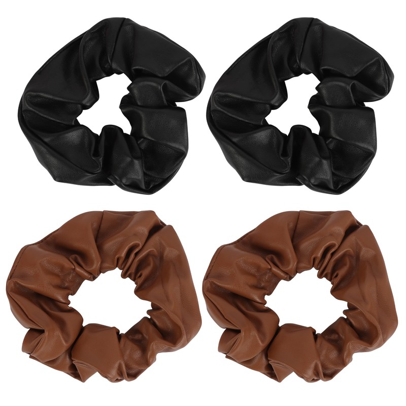 Motique Accessories 4 Pack Vegan Leather Scrunchies for Women Hair Scrunchy (Black Camel)