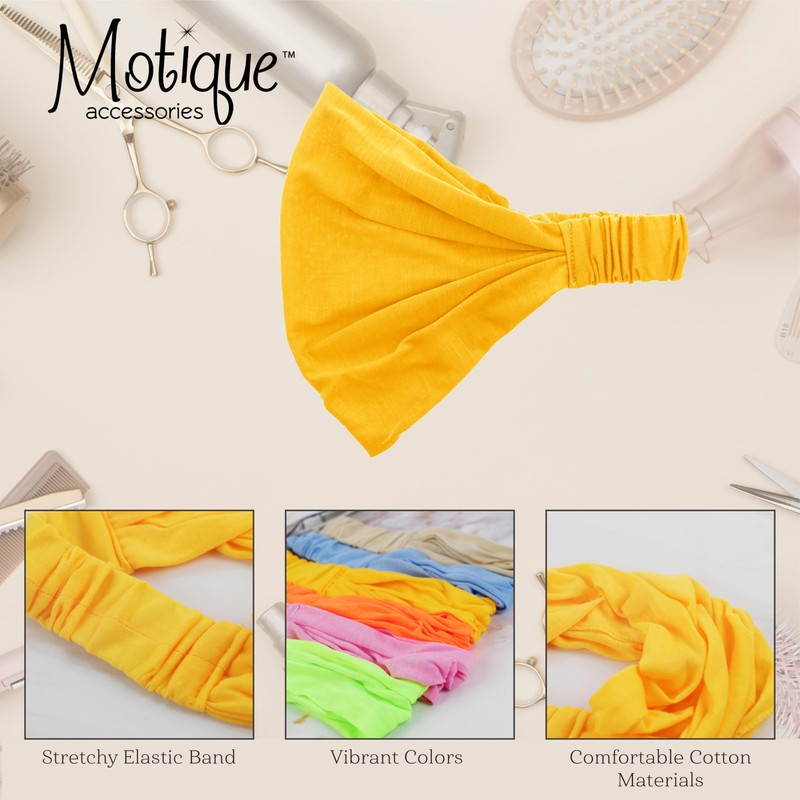 Motique Accessories Marigold Wide Cotton Head Band Solid Boho Yoga Style Soft Hairband