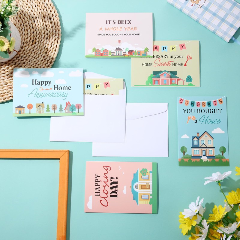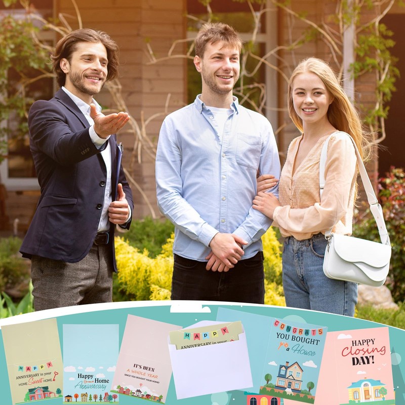 - Thick Card Stock: our home anniversary cards are crafted from thick paper; With crisp, clear printing that ensures every detail stands out, these cards are resistant to bending or tearing and maintain their vibrant appearance without fading over time; Such quality ensures that your housiversary cards maintain their pristine condition, making a lasting impression with every interaction