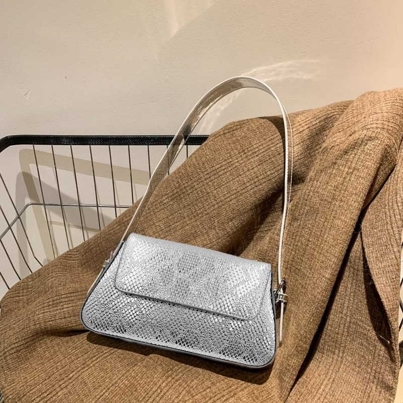 - ✿Fashionable Design✿: This Y2K shoulder bag features metallic laser leather with snake & crocodile pattern, which has a comfortable tactile feel and an easy-to-clean surface.
