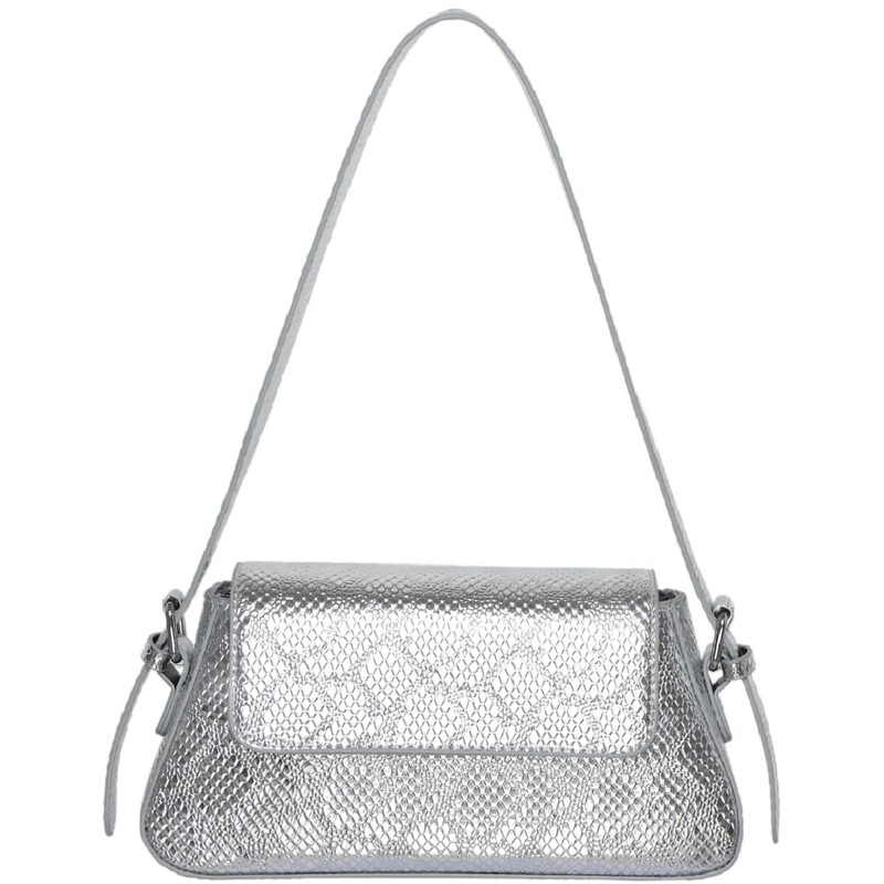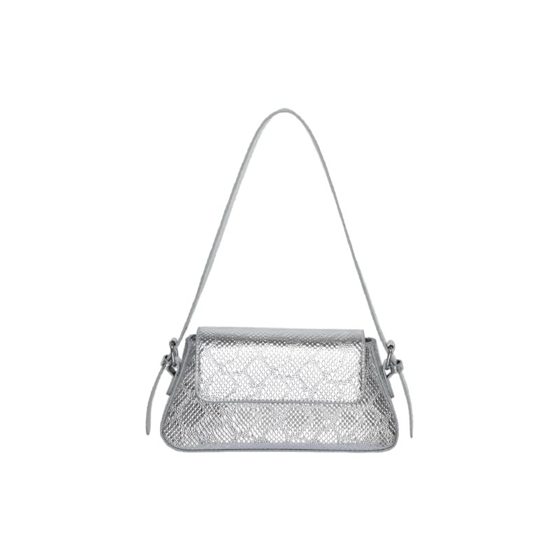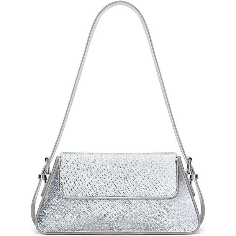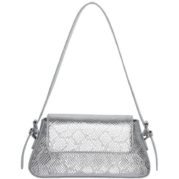 Motleader Silver Metallic Evening Bag for Women Y2K Silver Leather Shoulder Bags Sparkle Purse with Snake Crocodile Pattern, Silver