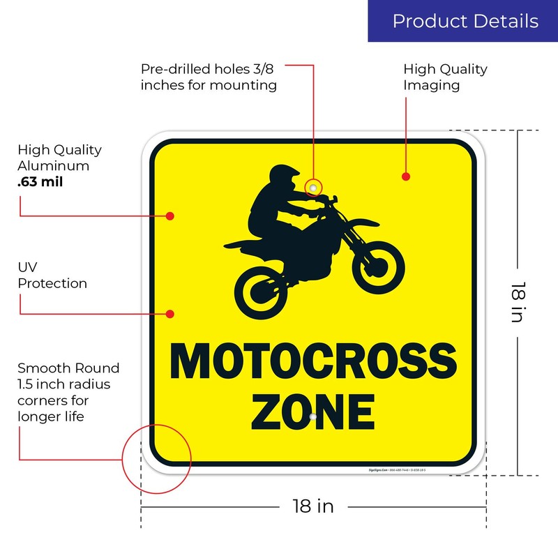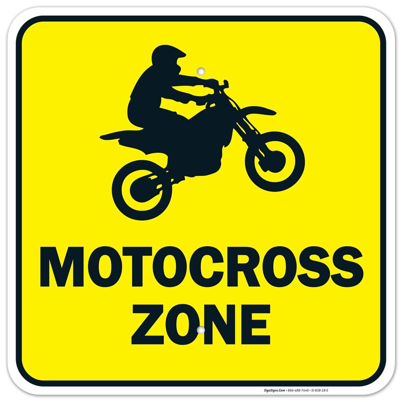 Moto Crossing Sign, Motocross Zone Sign, 18x18 Inches, Rust Free .063 Aluminum, Fade Resistant, Easy Mounting, Indoor/Outdoor Use, Made in USA by Sigo Signs