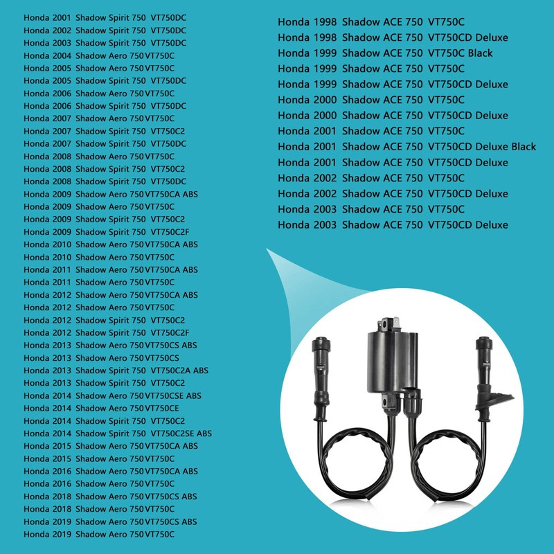 MOTO1988 2set of Ignition Coil & Spark Plug Cap For HONDA Shadow 750 Shadow ACE 750 Aero 750 Spirit 750 VT750 1998-2019