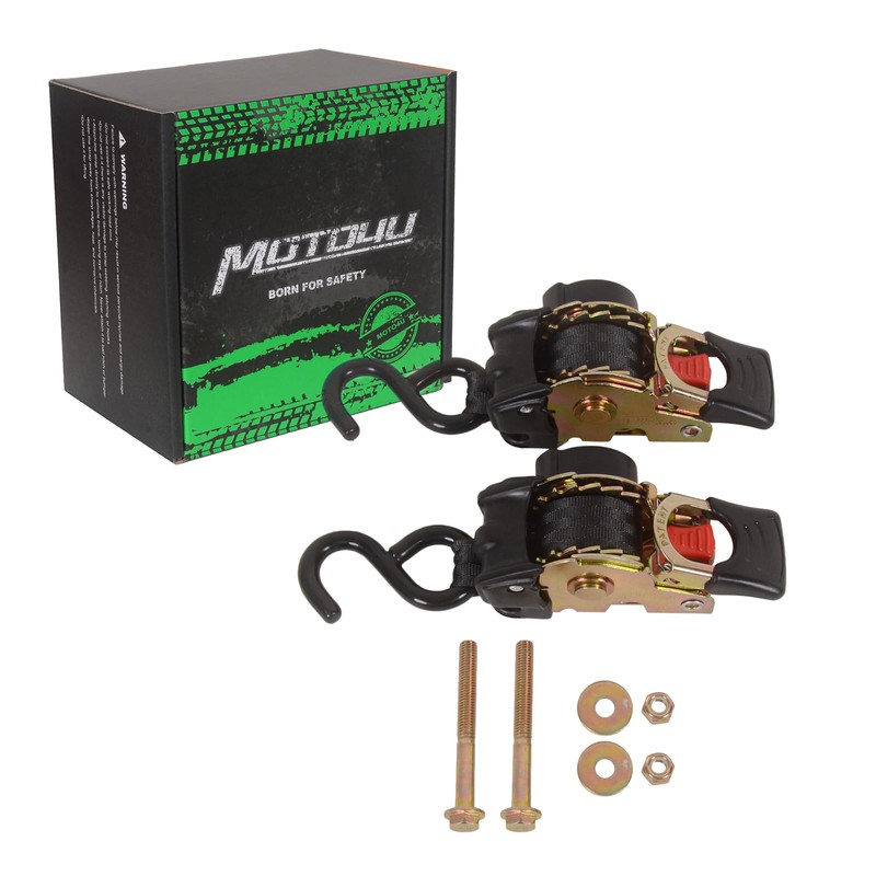 MOTO4U 2 Piece 1" x 6' Bolt-On Retractable Ratcheting Tie-Down Strap AutoRetract Marine Strap Transom Tie Downs Single Hook