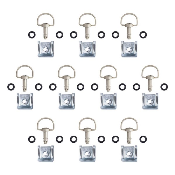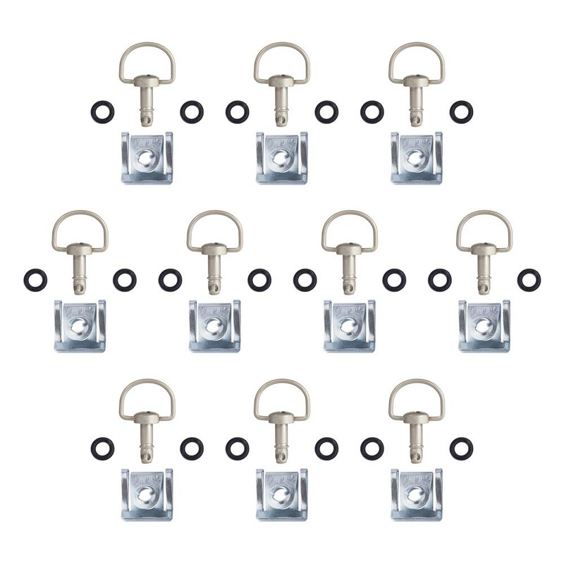 - Includes: 10 Stainless Steel Matt Sliver 14mm D-Ring 1/4 Turn Fasteners, 10 Clip On Fasteners, and 20 Clear Retaining Washer