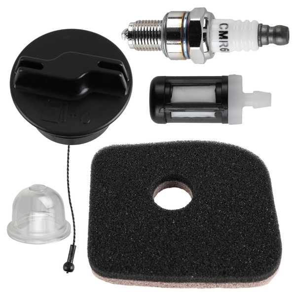 - Package Includes: 1 Fuel Tank Cap, 1 Air Filter, 1 Fuel Filter, 1 Spark Plug, 1 Primer Bulb