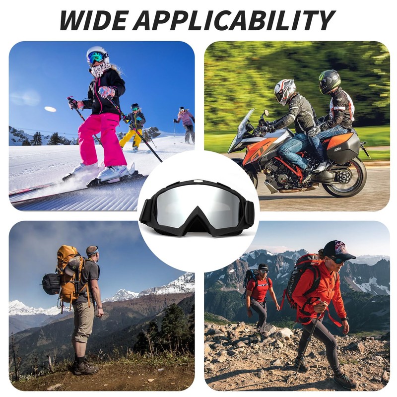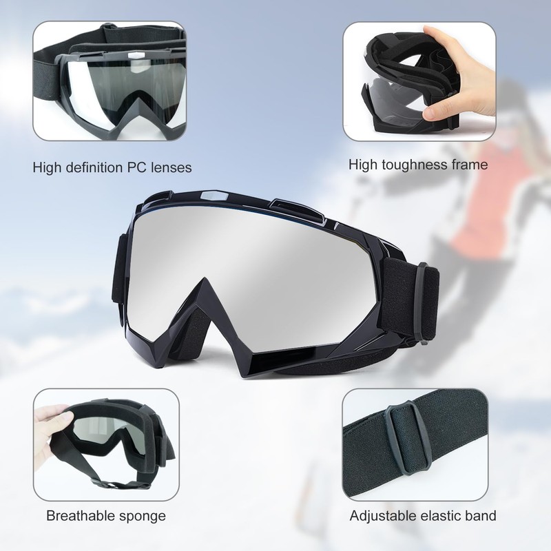 Motocross Goggles Ski Snowboard Goggles Adjustable Telescopic Strap Cross Goggles with Foam Padding Both for Men and Women Suitable for Outdoor Sports Silver