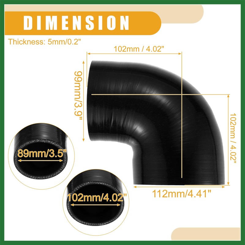 - About: [PRODUCT DIMENSION] Inside Diameter: 89mm/3.5",102mm/4.02", Wall Thickness: 5mm/0.20", Outer Diameter: 99mm/3.9", 112mm/4.41", Length: 102mm / 4.02", 102mm / 4.02". Please actually measure the size of your silicone hose cap before purchasing.