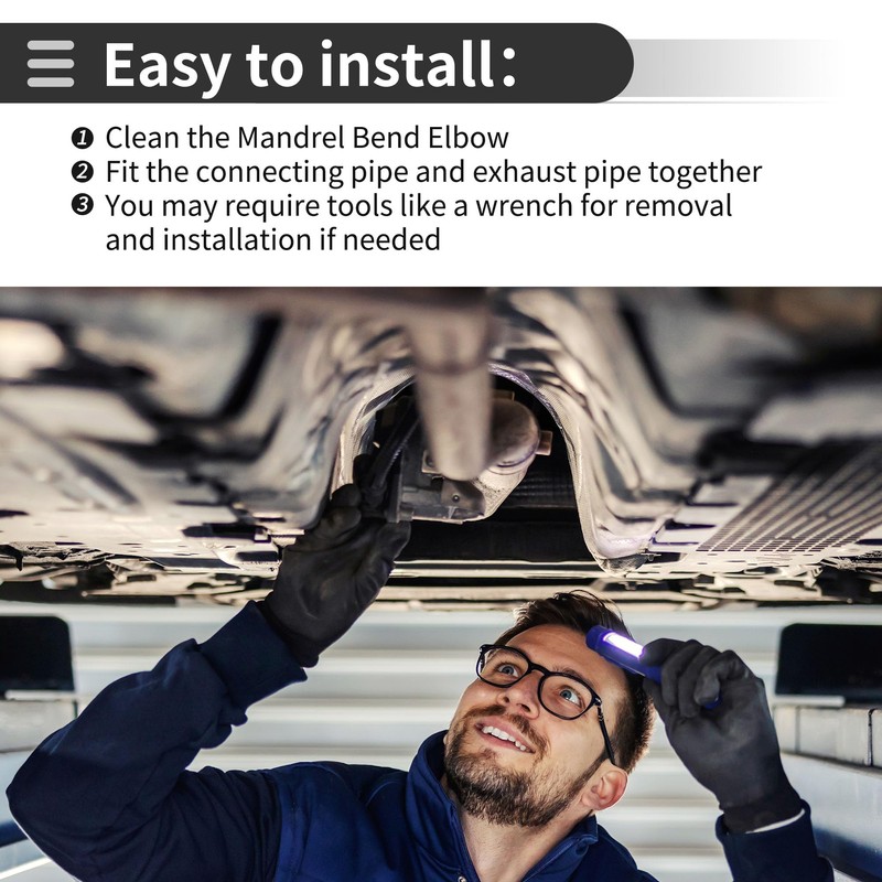 - [Installation Guide]:Easy to install:1. Clean the Mandrel Bend Elbow;2. Fit the connecting pipe and exhaust pipe together;3. You may require tools like a wrench for removal and installation if needed.