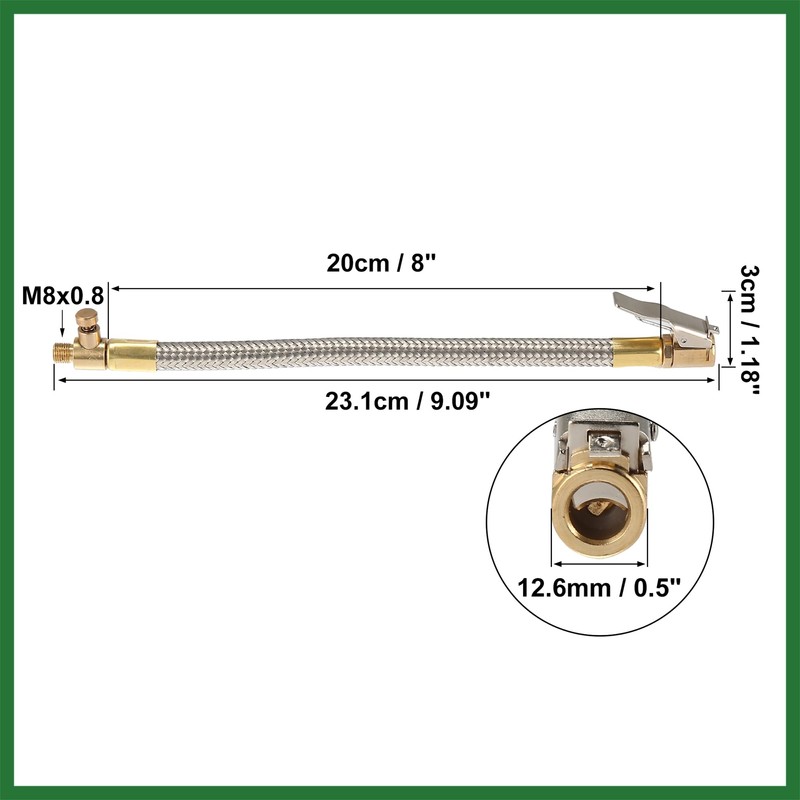 - About: Nice tight seal lock on tire chuck, corrosion resistant, wear resistance, good performance, durable and flexible. The tire chuck is made of durable stainless steel and a heat resistant rubber hose, durable and not easily damaged.