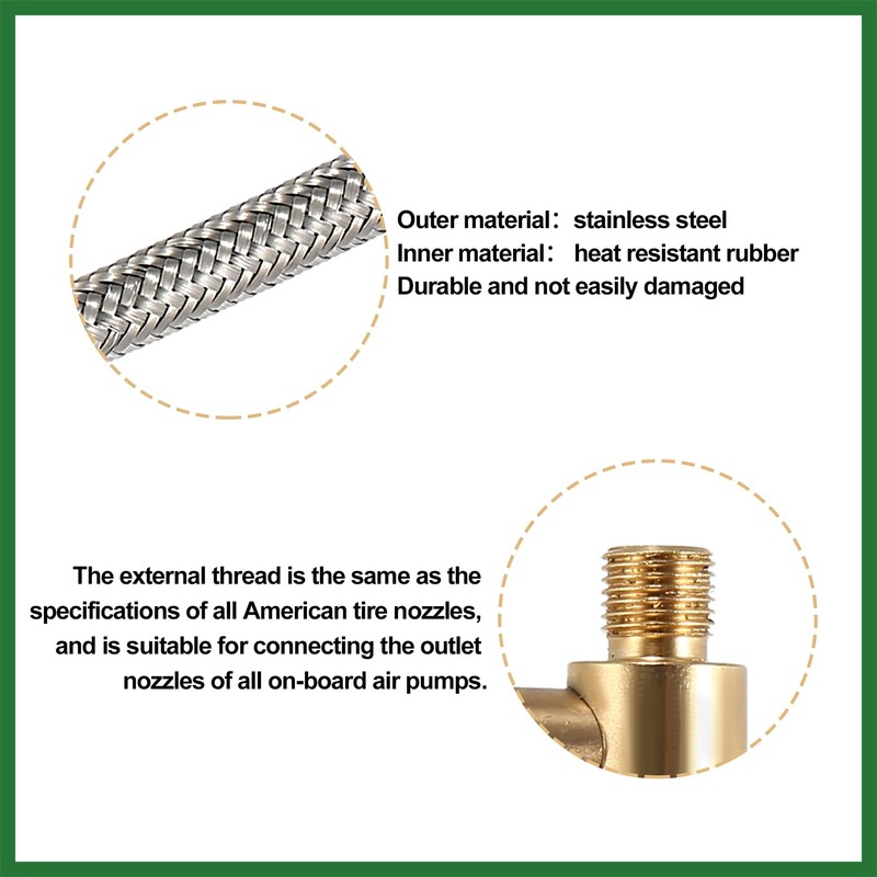 The tire chuck is made of durable stainless steel and a heat resistant rubber hose, durable and not easily damaged.