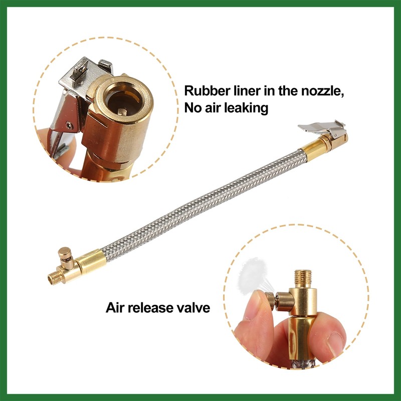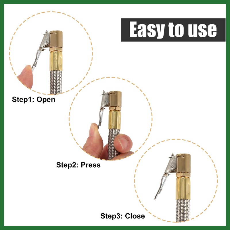 The tire chuck is made of durable stainless steel and a heat resistant rubber hose, durable and not easily damaged.