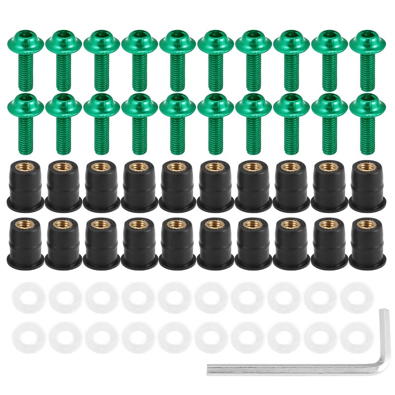 Motoforti 20pcs M5 Motorcycle Windscreen Screw Fairing Windscreen Bolt Green
