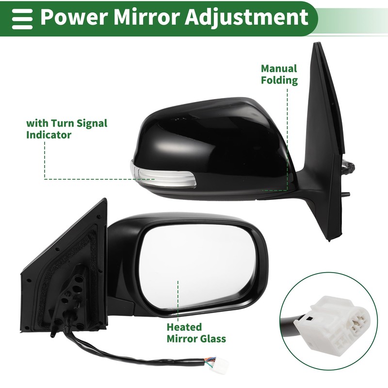 • Feature: Replace the damaged mirror as soon as possible as it will affect driving safety. Our rearview mirrors are made with high grade ABS housing, stable motor and more high temperature resistant glass, strictly in accordance with OEM standards and each one will be tested before ship.