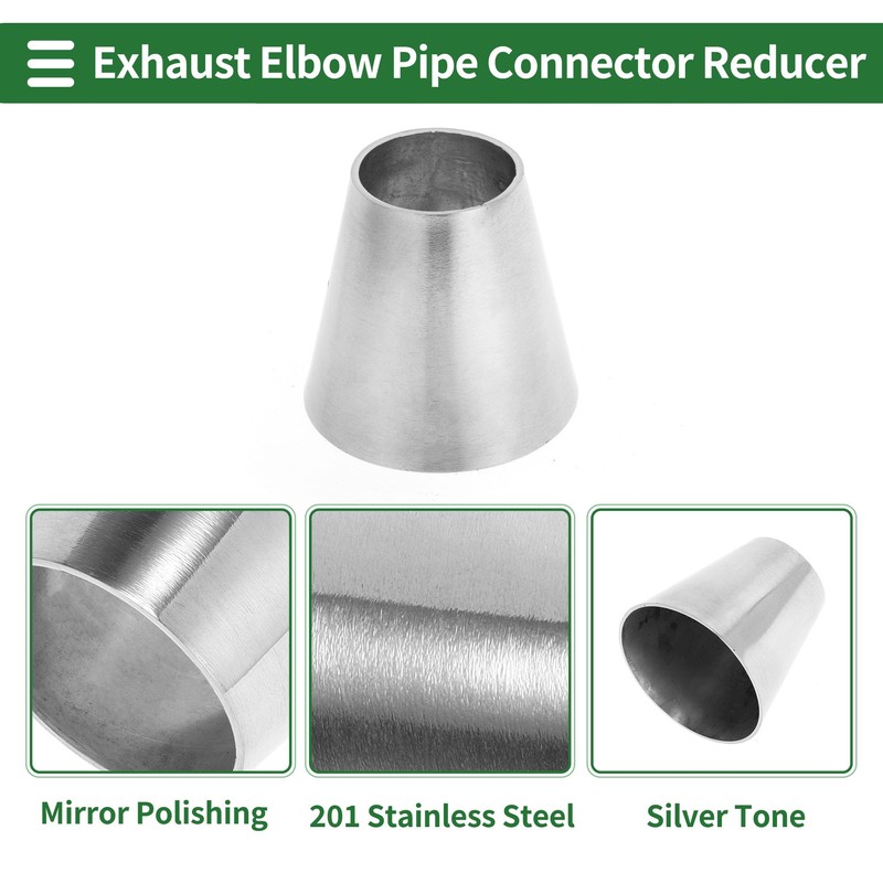 - Installation Guide:Easy to install: 1. Clean the Exhaust Pipe Adapter Connector Reducer. 2. Fit the connecting pipe and exhaust pipe together. 3. You may require tools like a wrench for removal and installation if needed