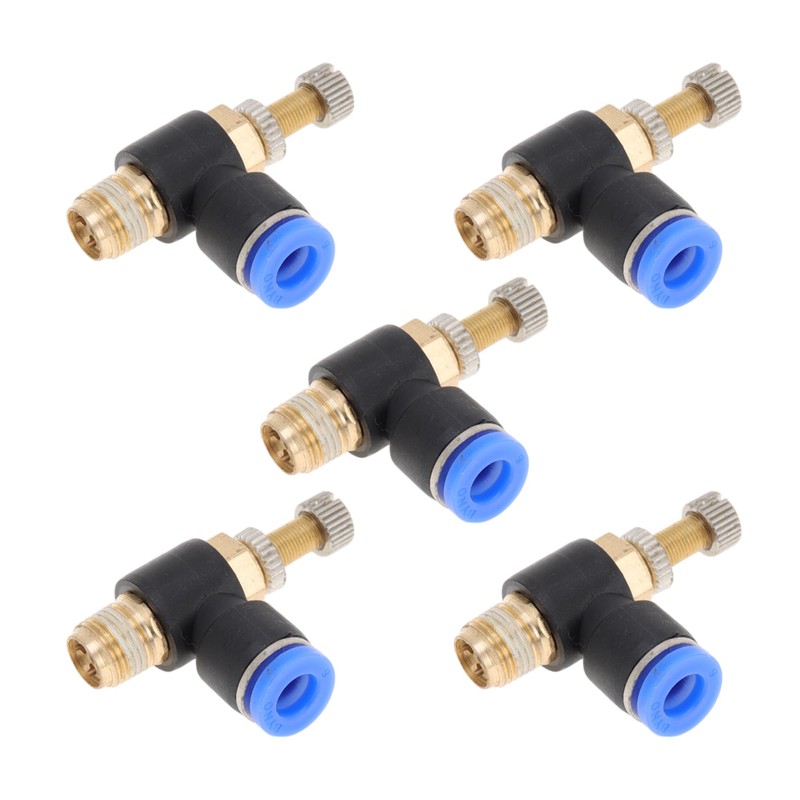 Motoforti Push to Connect Air Fittings 1/4" 90 Degree Air Flow Control Valve Plastic Metal 1/8"BSPT 5 Pcs Black Gold Tone