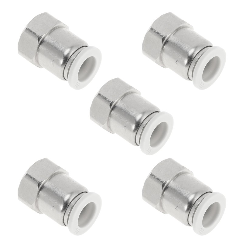 Motoforti Push to Connect Air Fittings 3/8" Female Thread Air Line Quick Connector Plastic Metal 3/8"BSPT 5 Pcs White Silver Tone