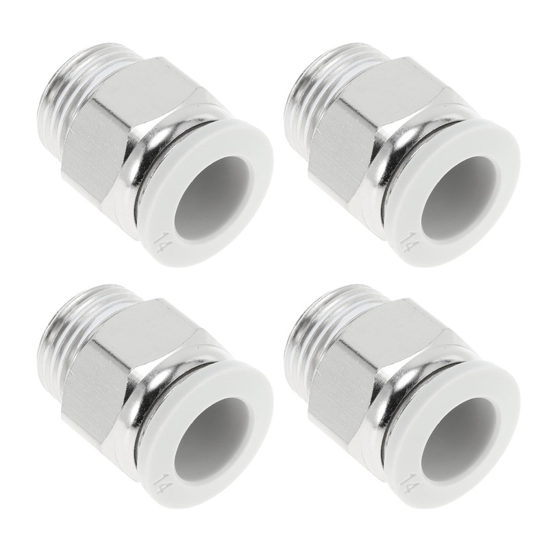 Motoforti Push to Connect Air Fittings 35/64" Male Thread Air Line Quick Connector Plastic Metal 1/2"BSPT 4 Pcs White Silver Tone