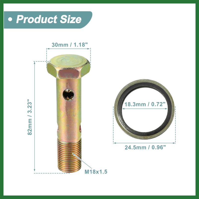 - About: Features: Washer Inner Diameter: 18.5mm / 0.73"(D), Washer Outer Diameter: 24.7mm / 0.97"(D), Screw Size: 82x30mm / 3.23"x1.18"(L*W), Thread Size: M18x1.5.