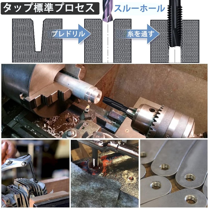 - 用途が広い:スパイラルポイントタップセットは、鋼、アルミニウム、銅、真鍮などのさまざまな金属や、プラスチックなどの他の材料に使用するのに適しています。ただし、高炭素鋼などの高硬度材料には適していません。