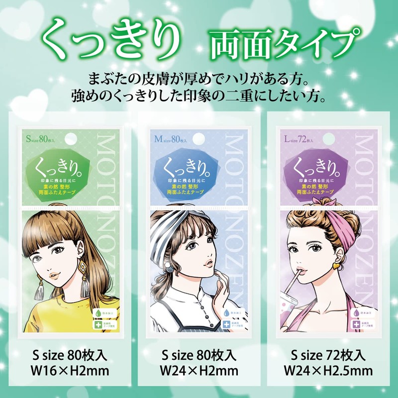 MOTONOZEN Eye Tape, Double Sided Tape, Double Sided Tape, Large, 1 Set, 72 Pieces, Easy to Apply, Strong, Inconspicuous, Crisp Type