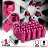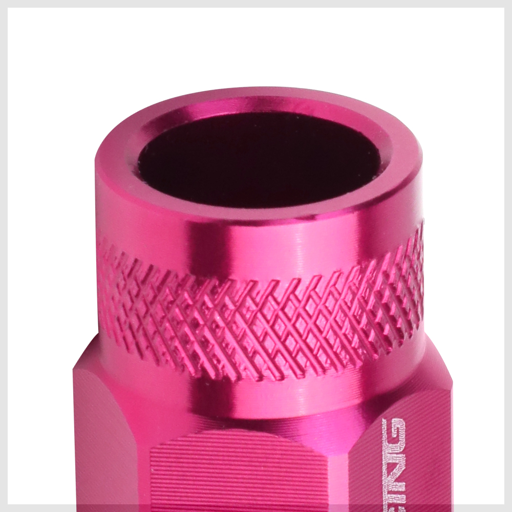Motor-1 (20) Pink M12x1.5 50mm Aluminum Open End Knurled Top Tuner Wheel Lug Nut+Adapter