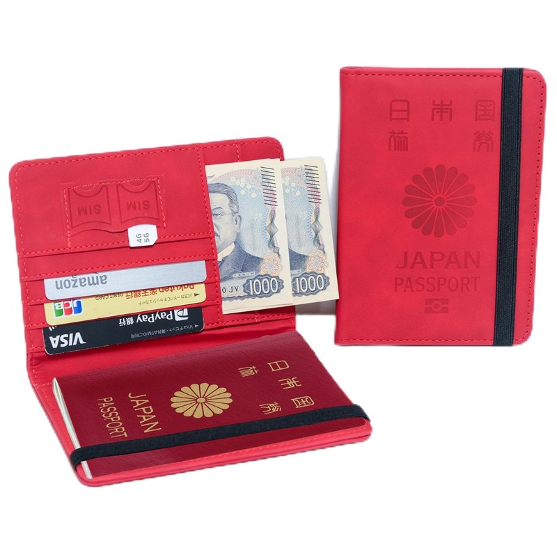 [MOTOR KANTO] パスポートケース スキミング防止 カードケース 多機能収納ポケット パスポートカバー 高級PUレザー国内海外旅行用品 (レッド)