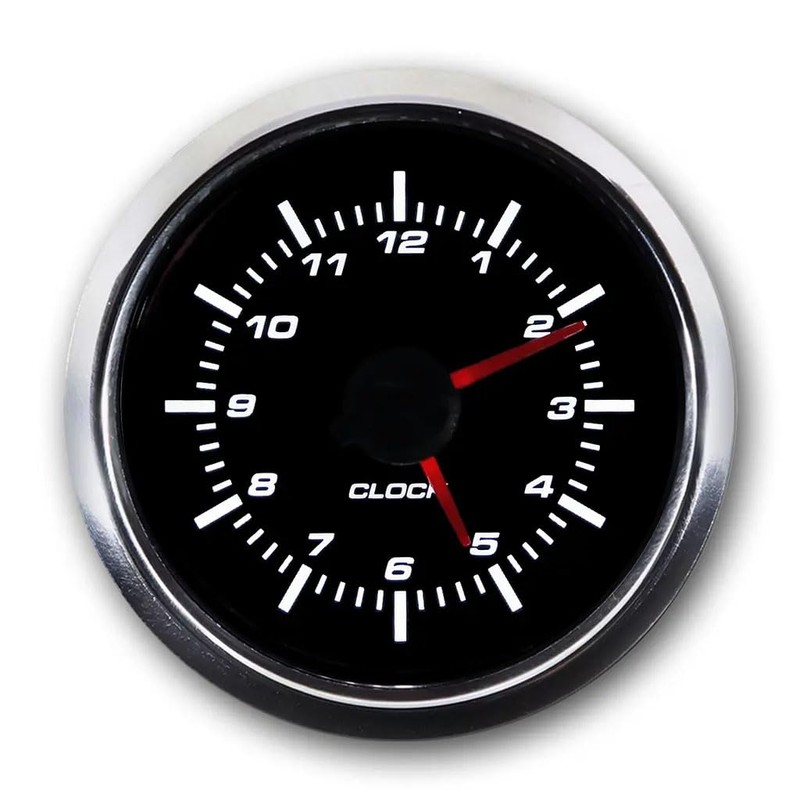 MOTOR METER RACING MGS Series 52mm 2-1/16" Electrical Clock Gauge 0~12 Hour Format Black Dial White LED Backlit Waterproof